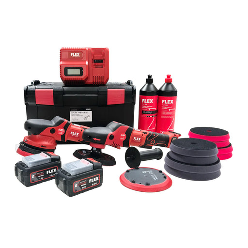 FLEX 18V Cordless Polishers XFE 15-150 DA & PE 150 Rotary 18.0-EC/5.0 Set /BS