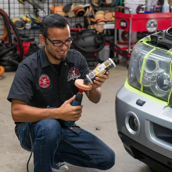 Headlight Restorer is a professional-grade cream polish designed to remove oxidation, yellowing, and haze from plastic headlight lenses. It restores clarity in seconds and leaves behind a protective layer to guard against future UV damage.