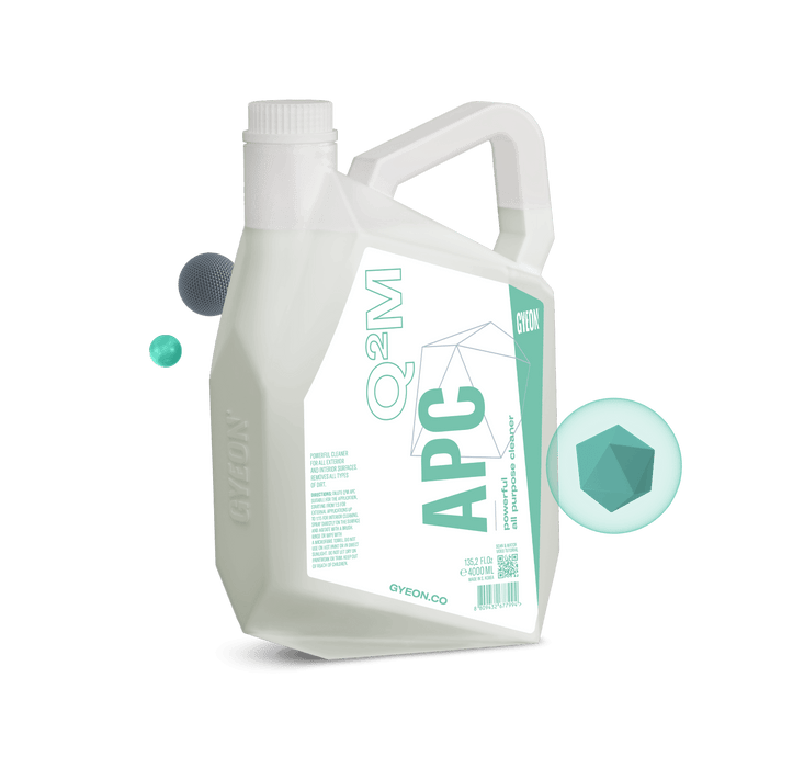 As the name can suggest, Q²M APC (All Purpose Cleaner) can be used for various task such as wheel arch cleaning, engine bay degreasing, interior stains removal and many others. Its cleaning power depends on the correct dilution for the required application. It starts from 1:5 for external applications up to 1:15 for interior cleaning. In extreme cases, like dirty wheel arches or engine bays, it might be used as a 1:1 dilution.