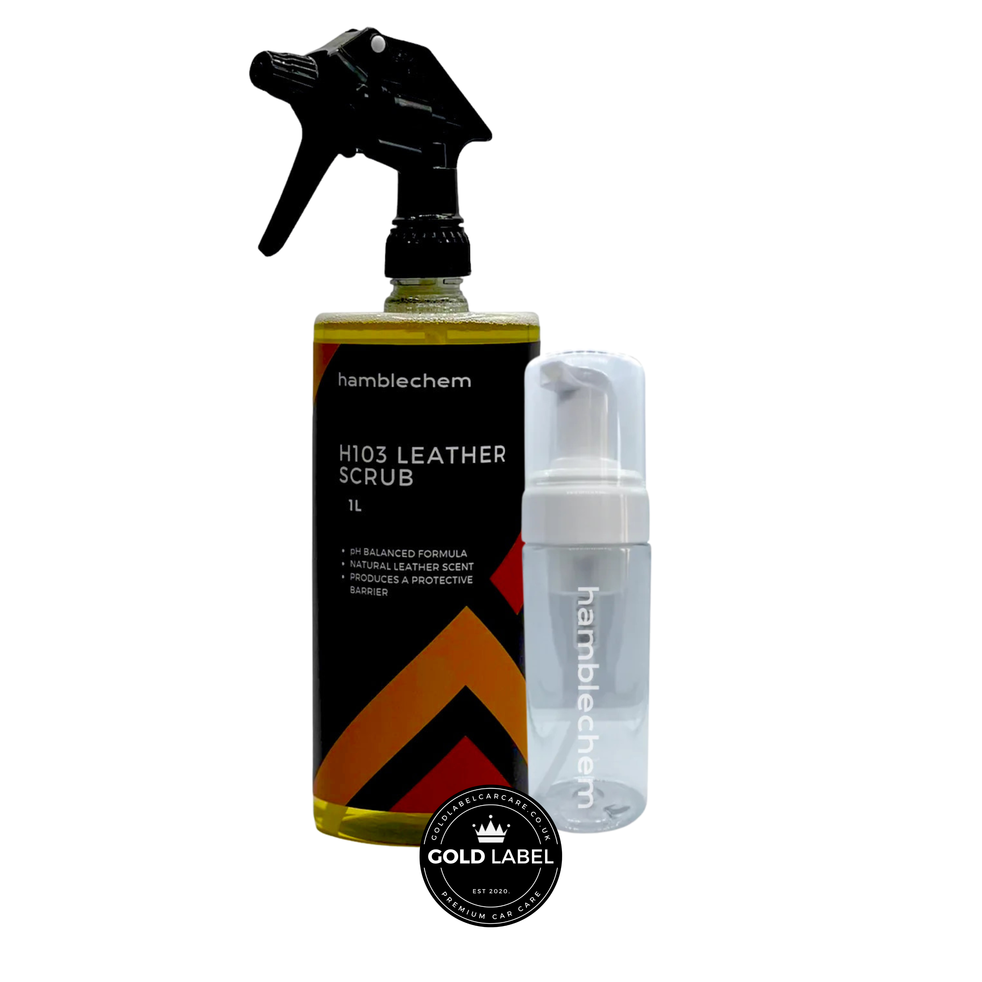 hamblechem H103 Leather Scrub: Hamblechem's H103 is the ultimate solution for maintaining your vehicle's leather interiors. Its strong formula effectively removes dirt, stains, and grime from all leather surfaces, leaving behind a pristine OEM Matt finish. The pH balanced formula ensures that no residue is left behind, preserving the stitching and protecting the leather from deteriorating.