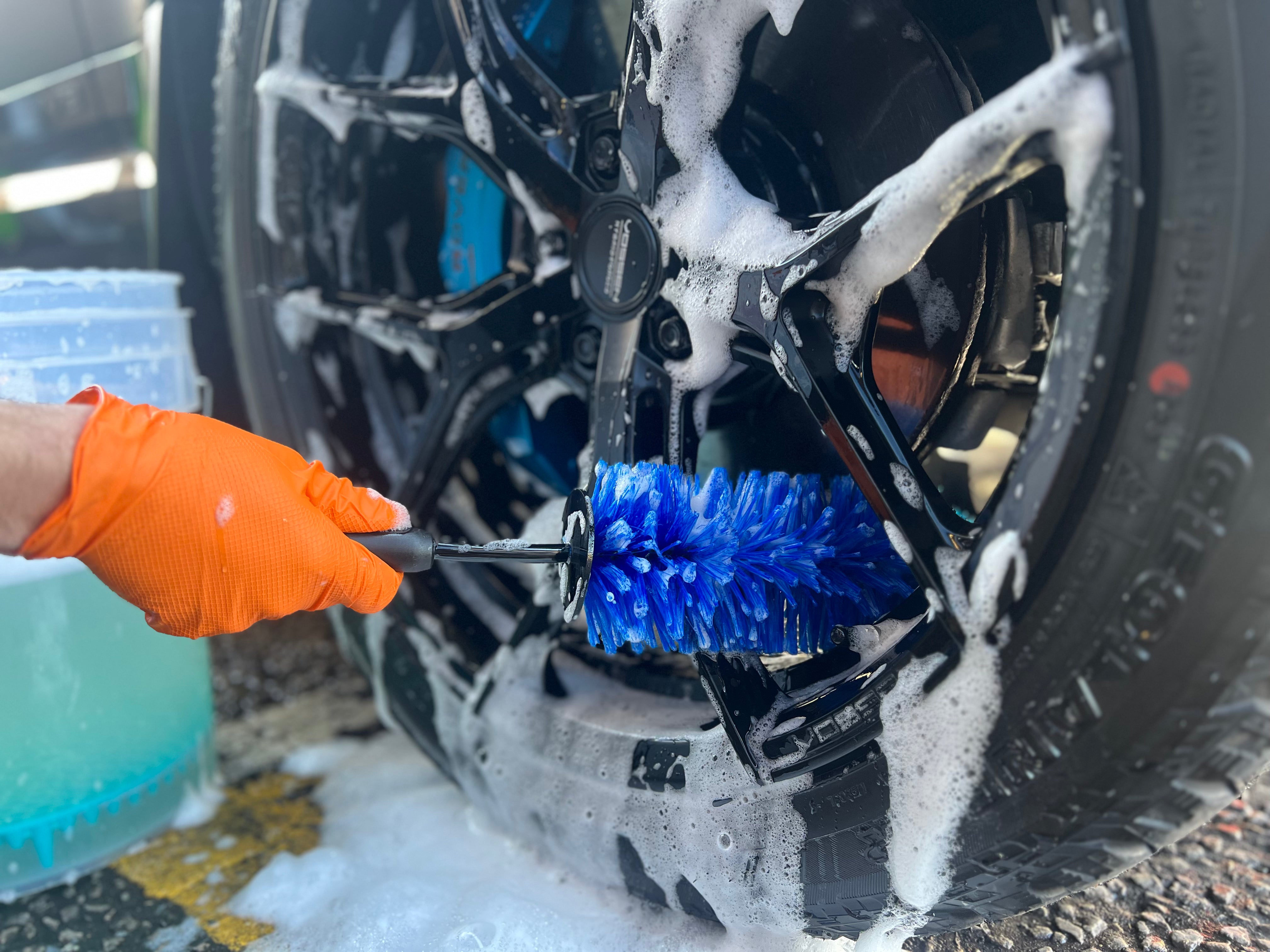 The Hamblechem Wheel Barrel Brush is the perfect tool to ensure that every inch of your vehicle is thoroughly cleaned, even the tiniest details. Designed with flexibility in mind, this brush has the ability to bend, curve, and reach into spaces of all sizes on your car. No corner or crevice will be left untouched. One of the standout features of the Hamblechem Wheel Barrel Brush is its ability to clean between spokes and maneuver between the brake caliper and the wheel's edge. Don't let its seemingly thick appearance fool you - the flexible bristles easily flatten to fit into even the smallest openings. Rest assured that the soft Nylon Nylex bristles will not scratch any coated, painted, polished, plated, or blank metal surface. Each bristle boasts a unique, multi-edge structure that provides exceptional cleaning power. Even after repeated use, the bristles effortlessly bounce back to their original shape. The brush's bendable stem is a game-changer, as it effortlessly contours to the shape of your wheels. Thanks to its remarkable flexibility, you can bend the top half of the brush to one side and insert it between spokes to clean the interior rim of the wheel, even the hard-to-reach areas that face underneath the vehicle. The Hamblechem Wheel Barrel Brush's synthetic bristles are chemical resistant, allowing you to freely use your favorite wheel cleaner. For optimal results, it is recommended to use a water-based wheel cleaner. Not only is it safe for all types of coatings, but it also avoids any pitting or dulling on the wheel's surface. The tip of the brush is covered in vinyl, ensuring accidental scratches and scrapes are prevented. Additionally, a rubber knuckle guard protects your hands from hard metal edges. The brush's ergonomic handle guarantees comfort during use, even for extended cleaning sessions. While we've emphasized its ability to navigate tight openings, the Hamblechem Wheel Barrel Brush can also effectively clean large wheel openings, boasting a diameter of approximately 125mm. If you're searching for the ultimate gift for someone who struggles with cleaning their car's alloy wheels, look no further than the Hamblechem Wheel Barrel Brush. Its versatility makes it suitable for cleaning spoke or wire, chrome or painted wheels. With the Hamblechem Wheel Barrel Brush, you can achieve the right angle for spotless wheels every time.