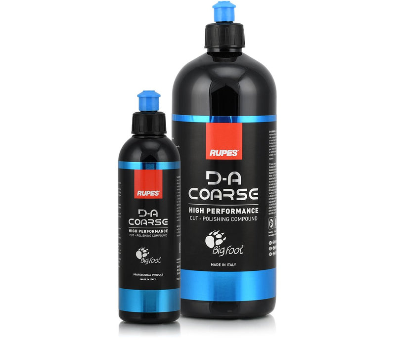 Rupes DA Coarse Compound is a fast cutting compound ideal for those that want rapid defect removal, excellent finishing clarity and a smooth user experience on all types of paint. Rupes DA Course Compound is designed to give the best results when used in combination with the Rupes DA Coarse Foam Pads or the Rupes Coarse Wool Pads on both BigFoot Dual Action and Gear Driven Machines.
